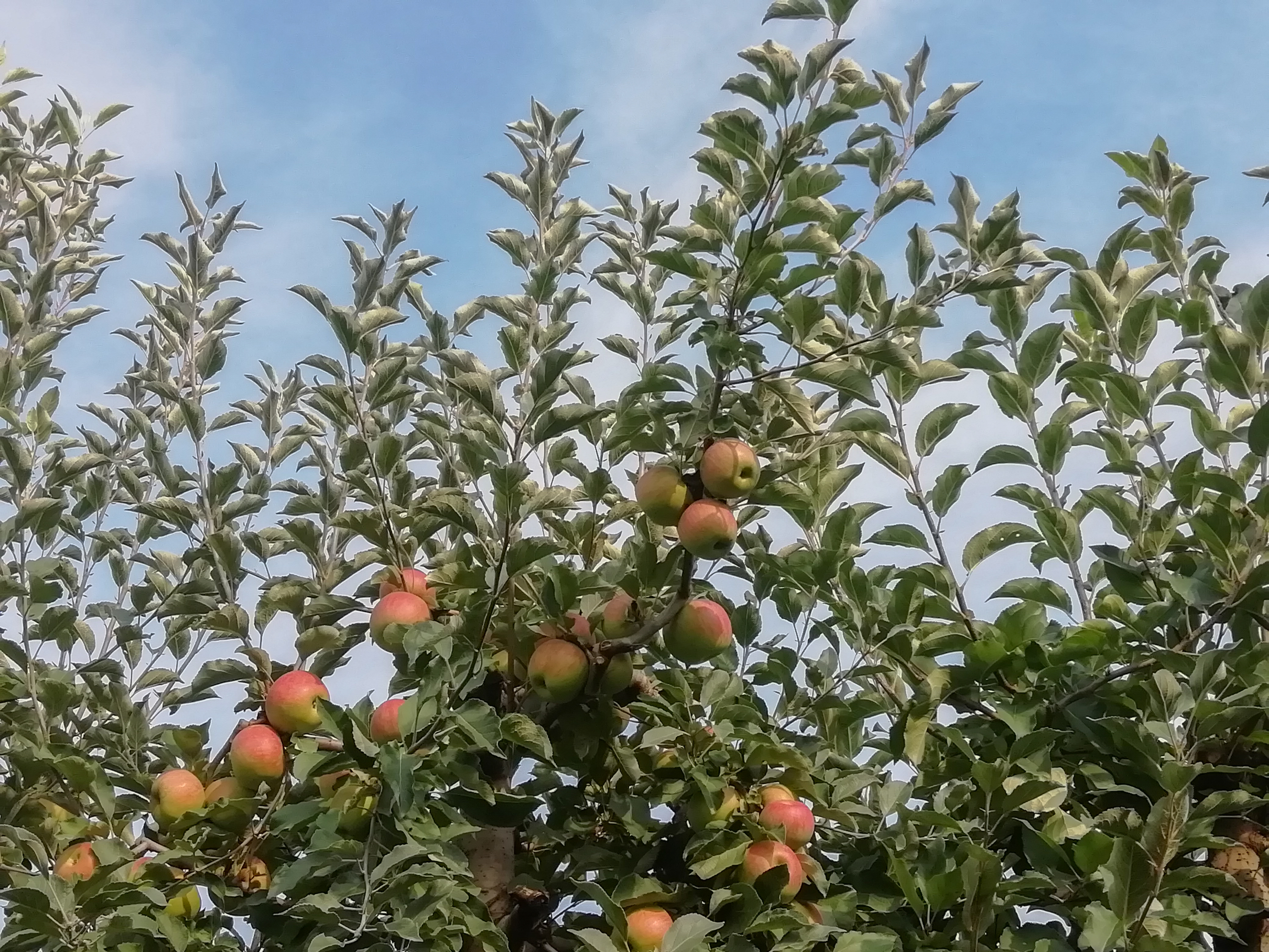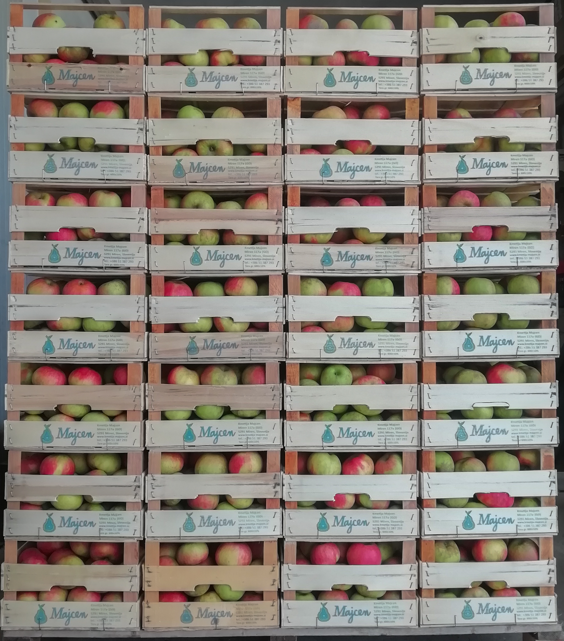 Pridelujemo zlasti zgodnje poletne sorte, med katerimi  na naši kmetiji prevladuje sorta elstar, med jesenskimi pa sorta  jonatan in red topaz. Jesenska jabolka večinoma predelamo v okusen  in 100 % naravni jabolčni sok.